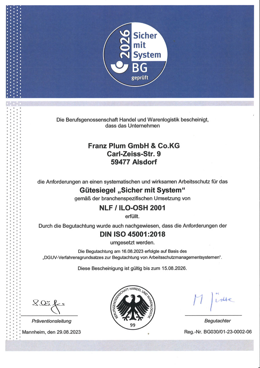 Die Firma Franz Plum GmbH & Co. KG, Firmensitz in Alsdorf, ist ein mittelständiger Familienbetrieb, welcher 1985 gegründet wurde.